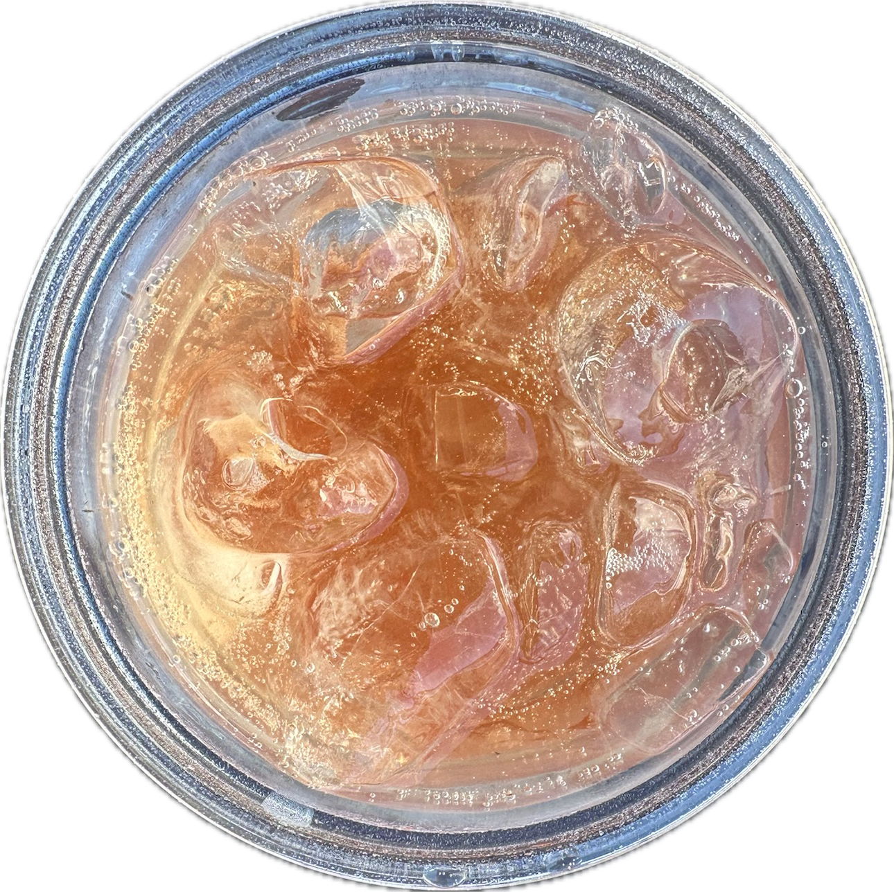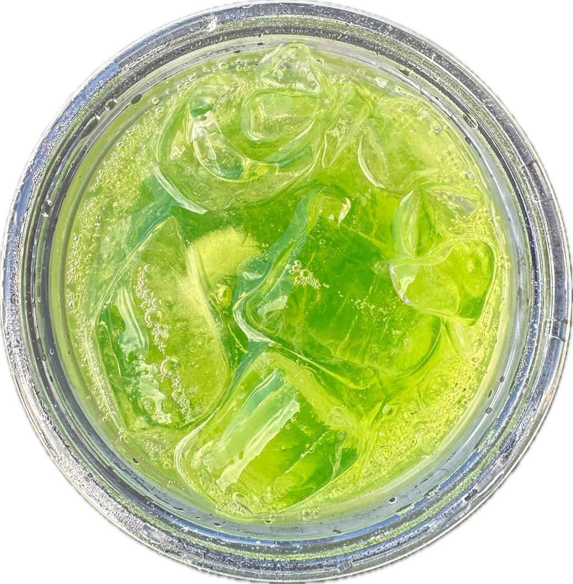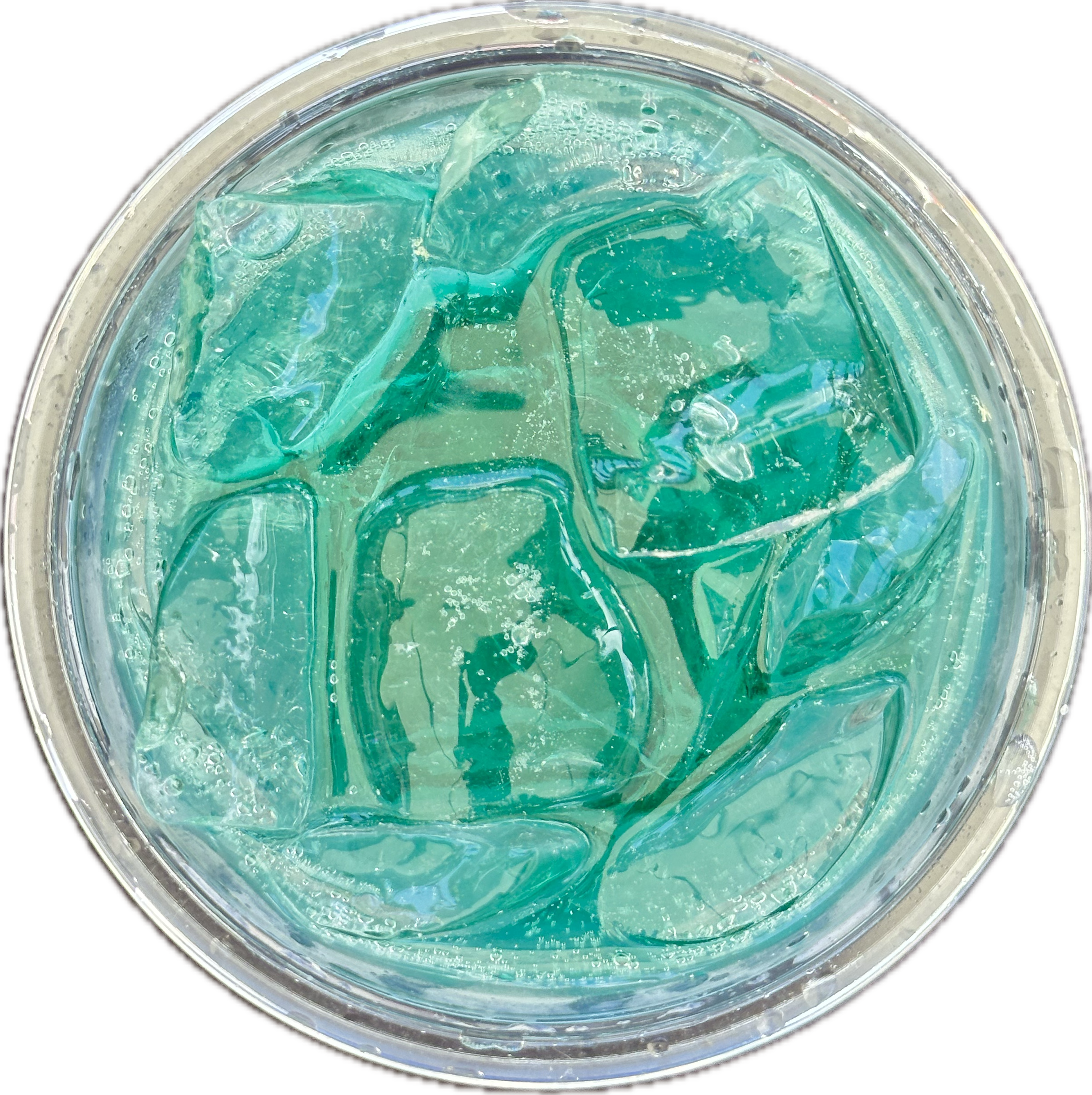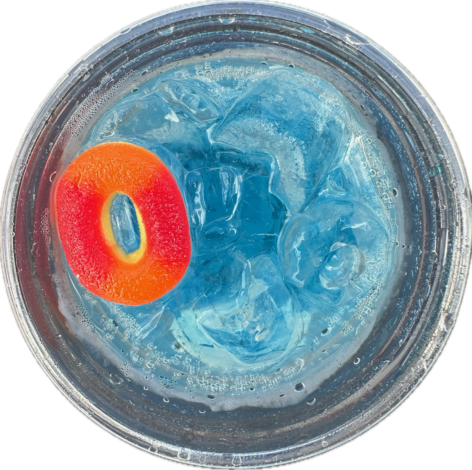 sprite + blue curaçao + peach ring gummy + edible glitter