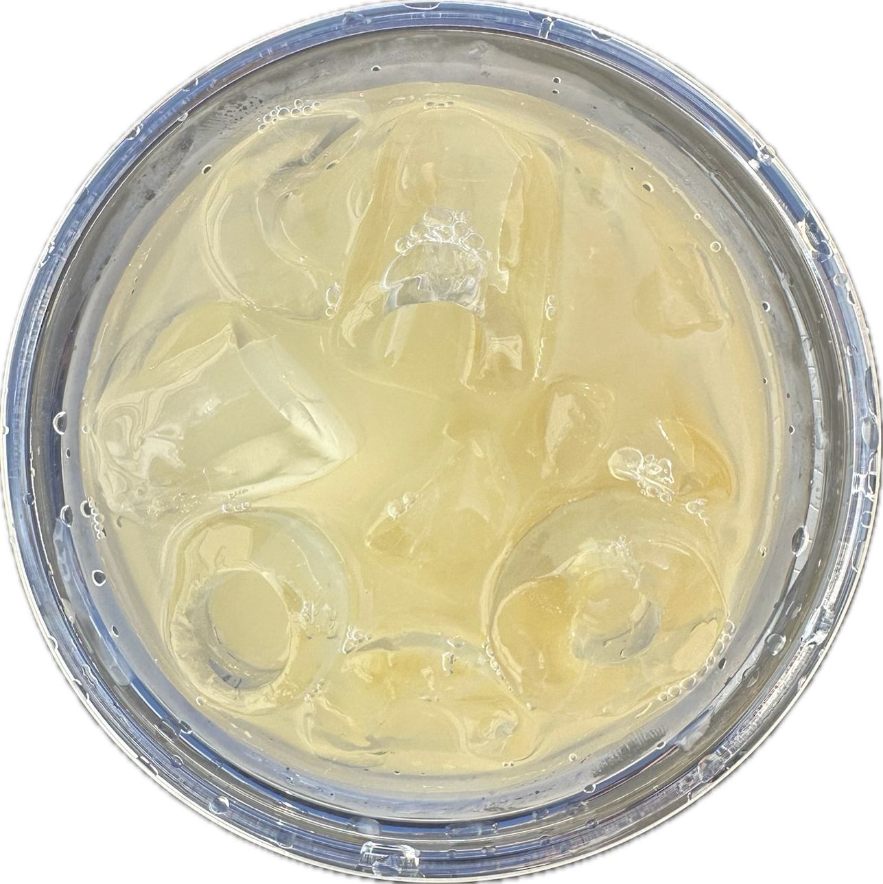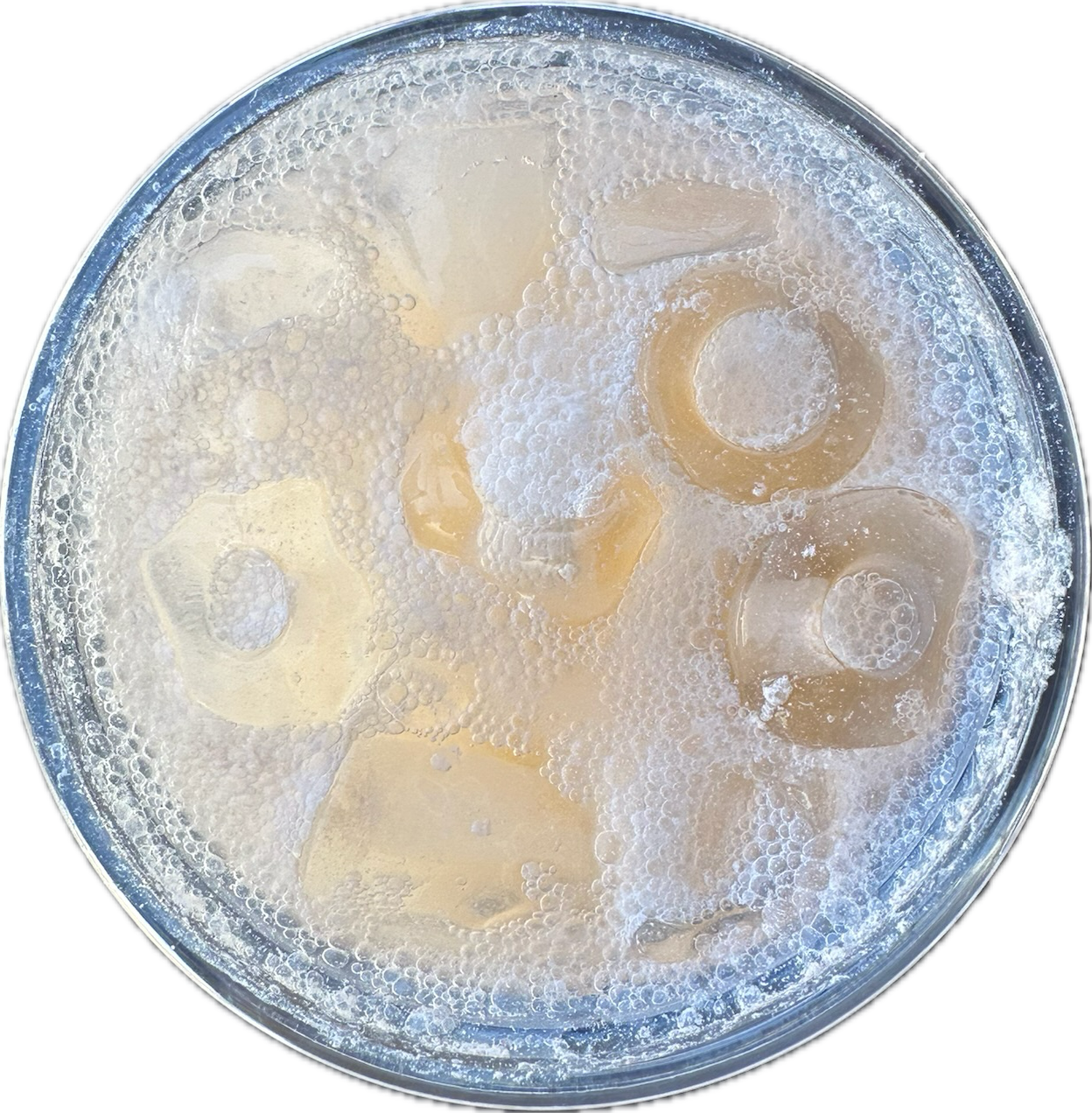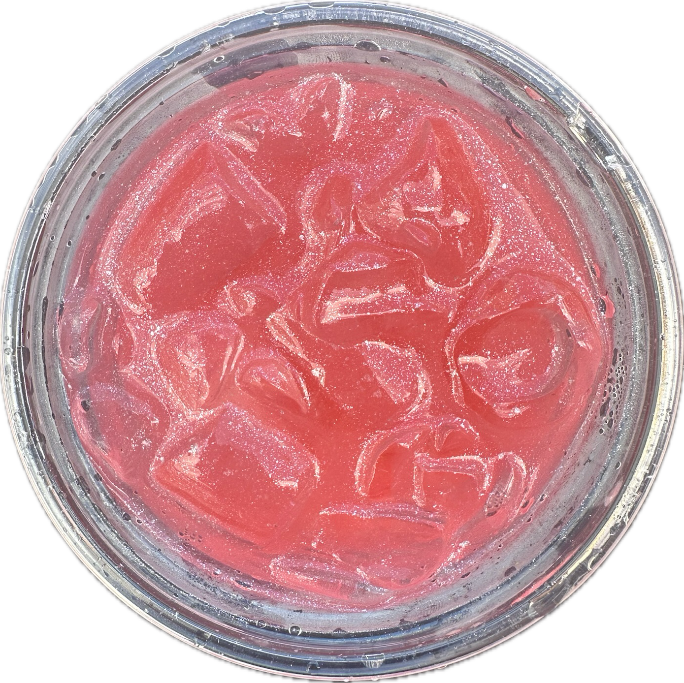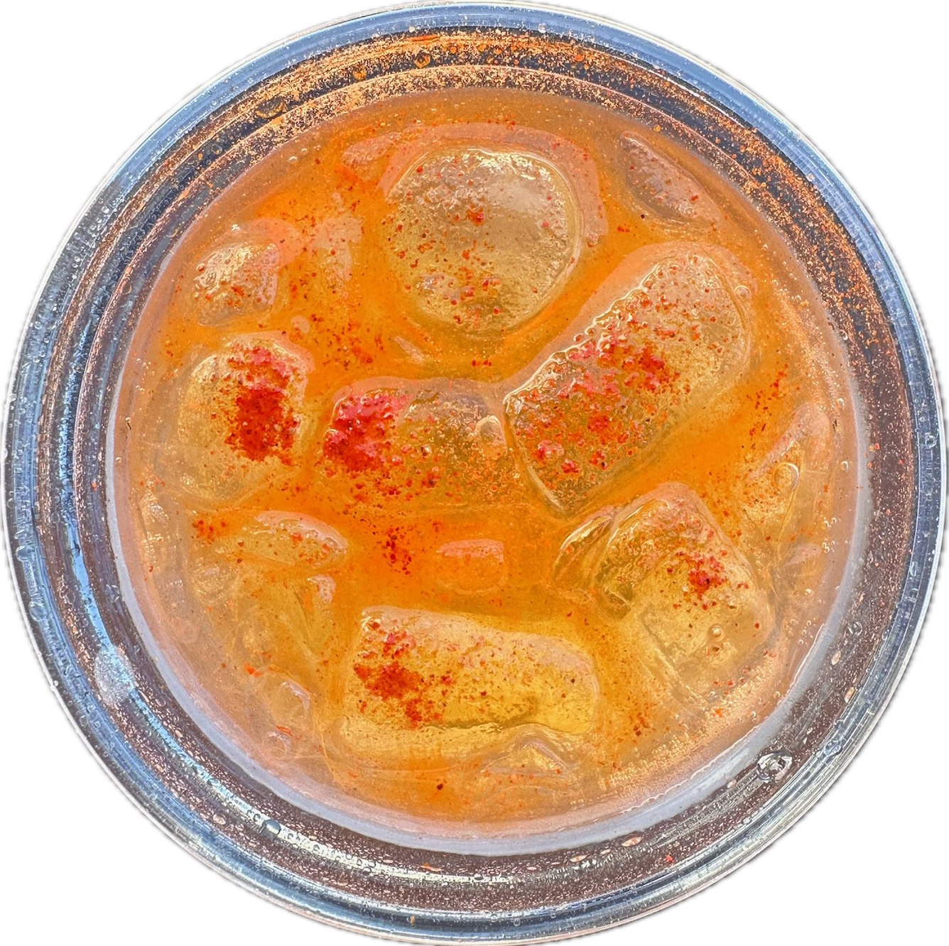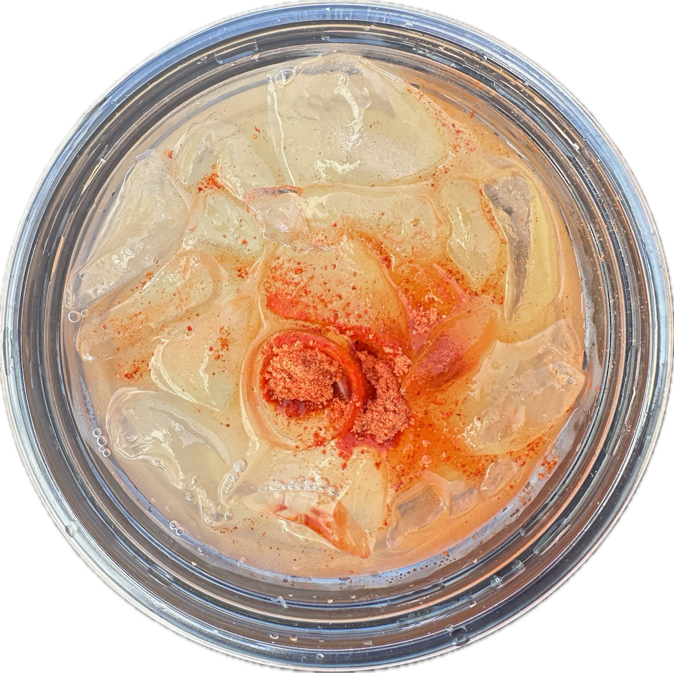 sprite + blue curaçao + peach ring gummy + edible glitter