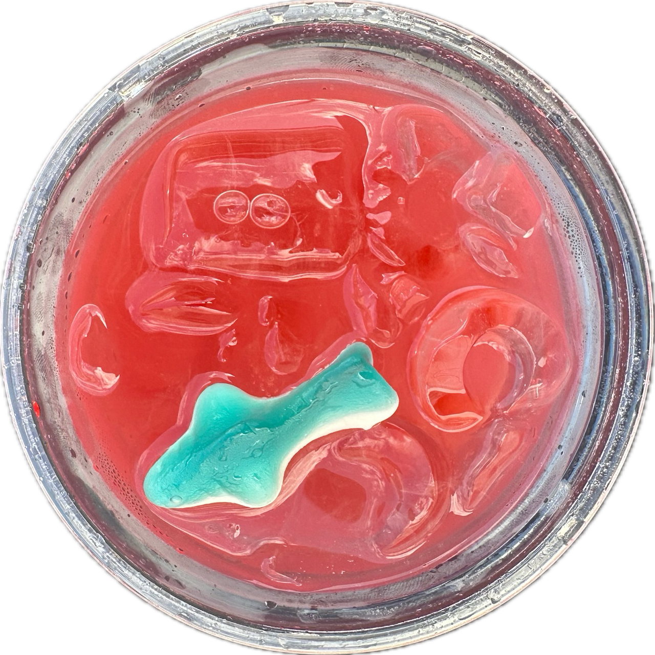 sprite + strawberry + raspberry + gummy shark + edible glitter
