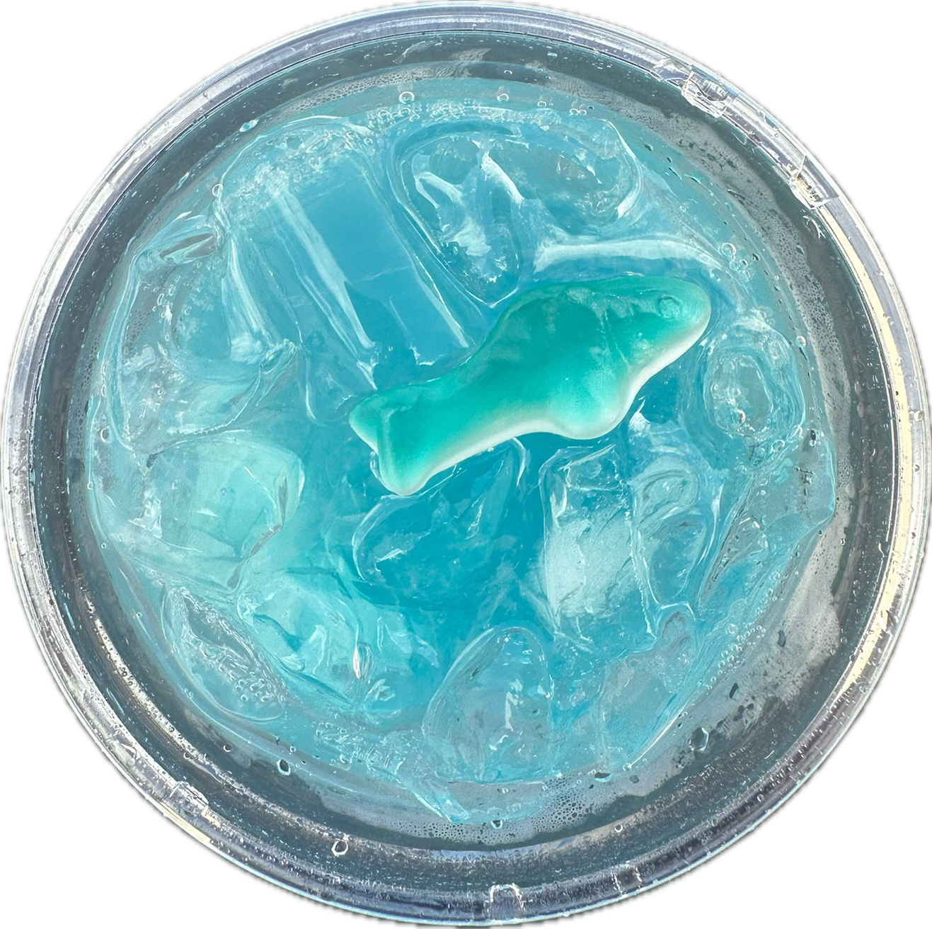 sprite + blue raspberry + gummy shark + edible glitter